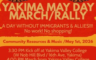 Join in the May Day March and show your support for immigrant laborers in the Valley! This year’s theme is “Marching for justice, dignity, and equality” El tema de este año es “Marchando por la justicia, la dignidad y la igualdad”. May 1, 2025 4:00 – 7:00 pm March will Start & End at: Miller Park 513 N 3rd St, Yakima, WA 98901 Tentative Schedule: 4:00 – Gather at Miller Park 4:30 pm – Program begins 5:30 pm – March begins 7:00 – Return to Miller Park Recursos Comunitarios / Community Resources Comida / Food Música / Music Follow the May [...]